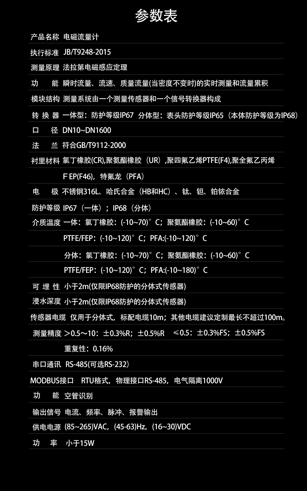 型號:聯測儀表DG-SIN-ZA高精度0.2級電磁流量計 精度: