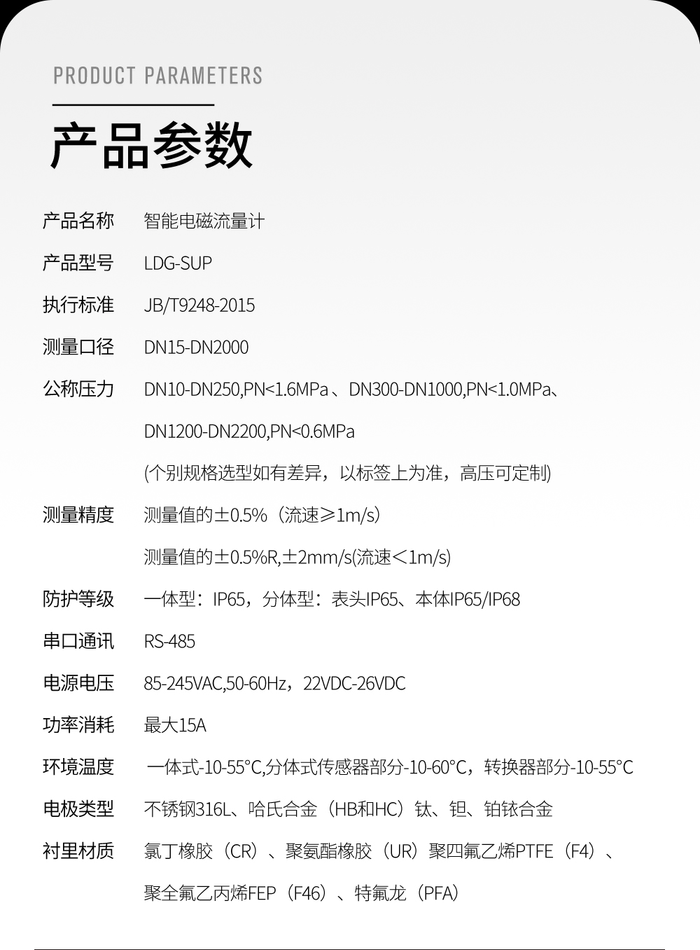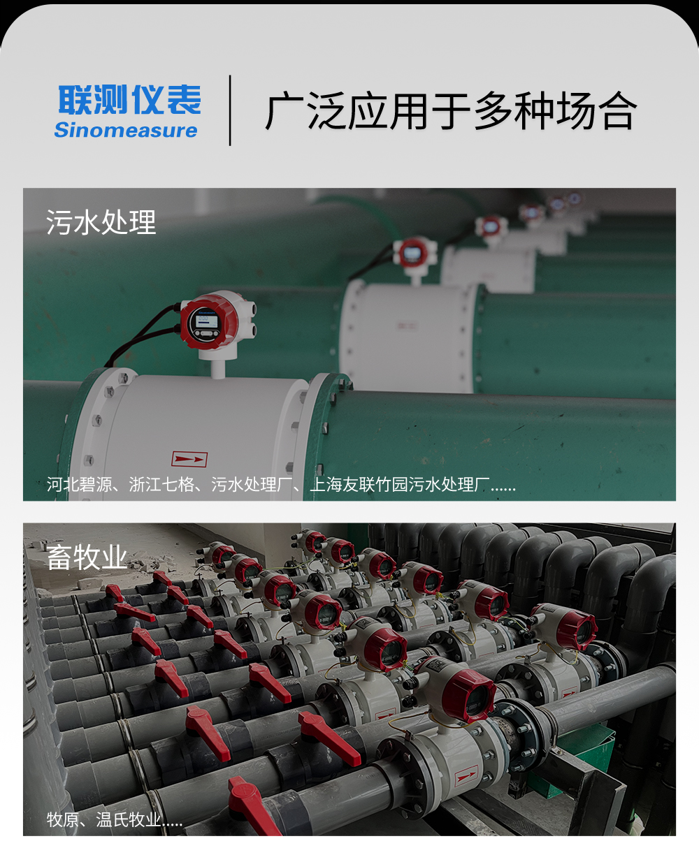 應用行業 聯測LDG電磁流量計適用于化工助劑、海綿城市、給水排水、水利灌溉、水處理、污水處理(環保污水控制、化工污水、電鍍污水)、造紙漿液(紙漿)、泥漿等場合。