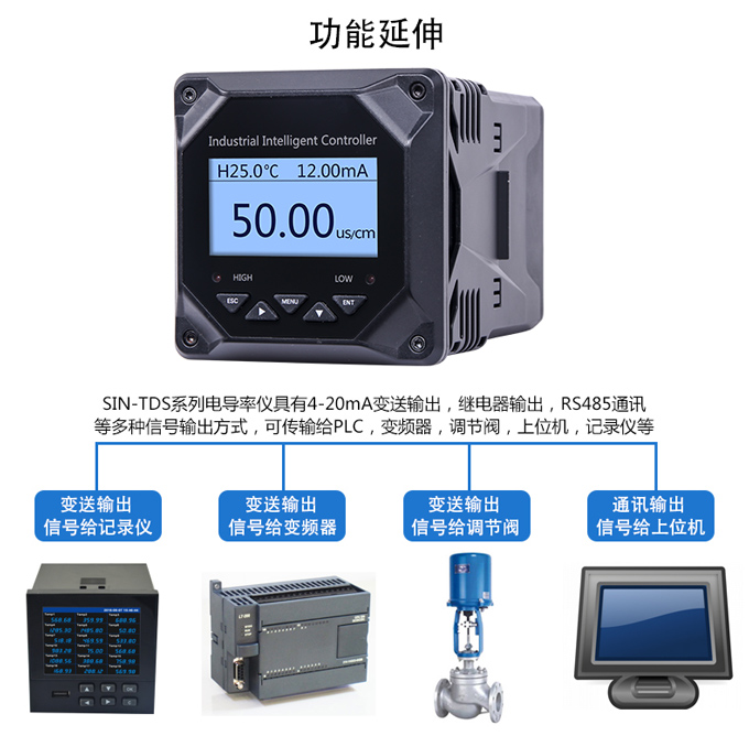 SIN-TDS210工業(yè)電導(dǎo)率儀表,可對(duì)各種工業(yè)用水的電導(dǎo)率(TDS)值進(jìn)行連續(xù)測量和控制。根據(jù)水工業(yè)的環(huán)境和特點(diǎn)結(jié)合國際供電標(biāo)準(zhǔn),考慮了特殊環(huán)境的電氣設(shè)計(jì)規(guī)范,增加了220VAC供電。