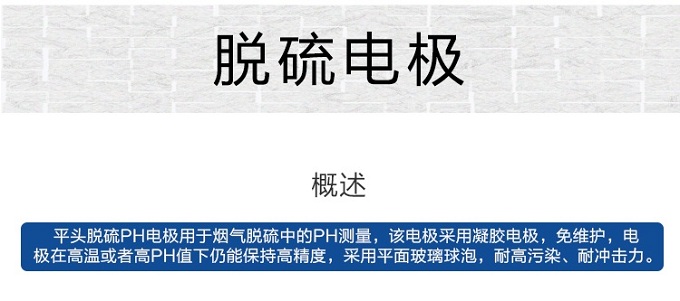 平頭脫硫pH電極用于煙氣脫硫中的pH測量,該電極采用凝聚電極,免維護(hù),電極在高溫或者高pH值下仍能保持高精度,采用平面玻璃球泡,耐高污染、耐沖擊力。
