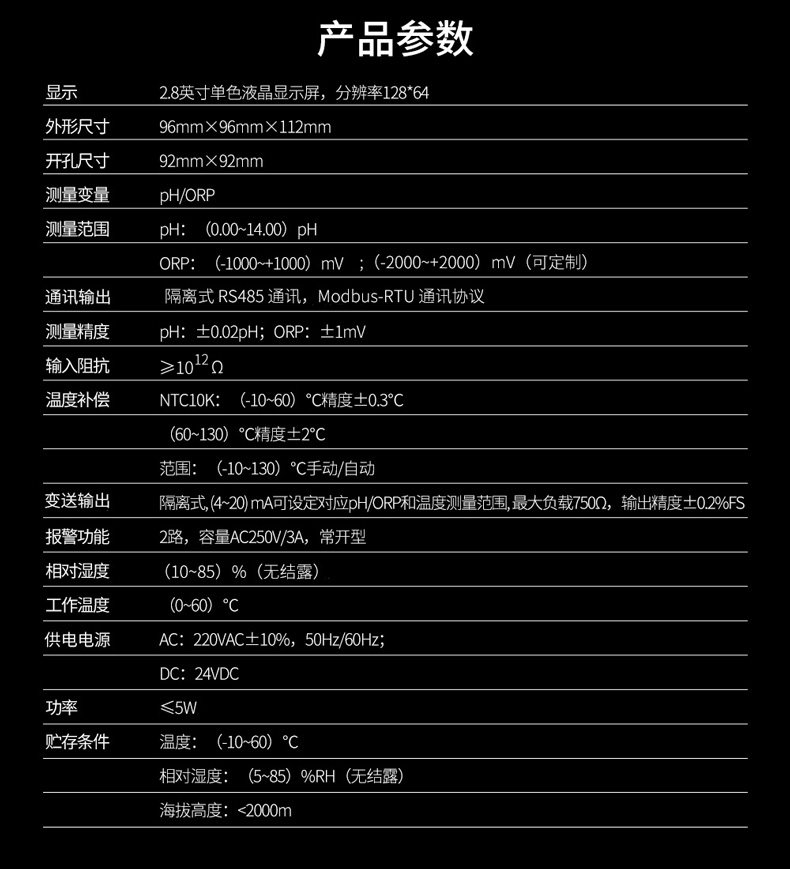 精度 pH:±0.02pH;ORP:±1mV