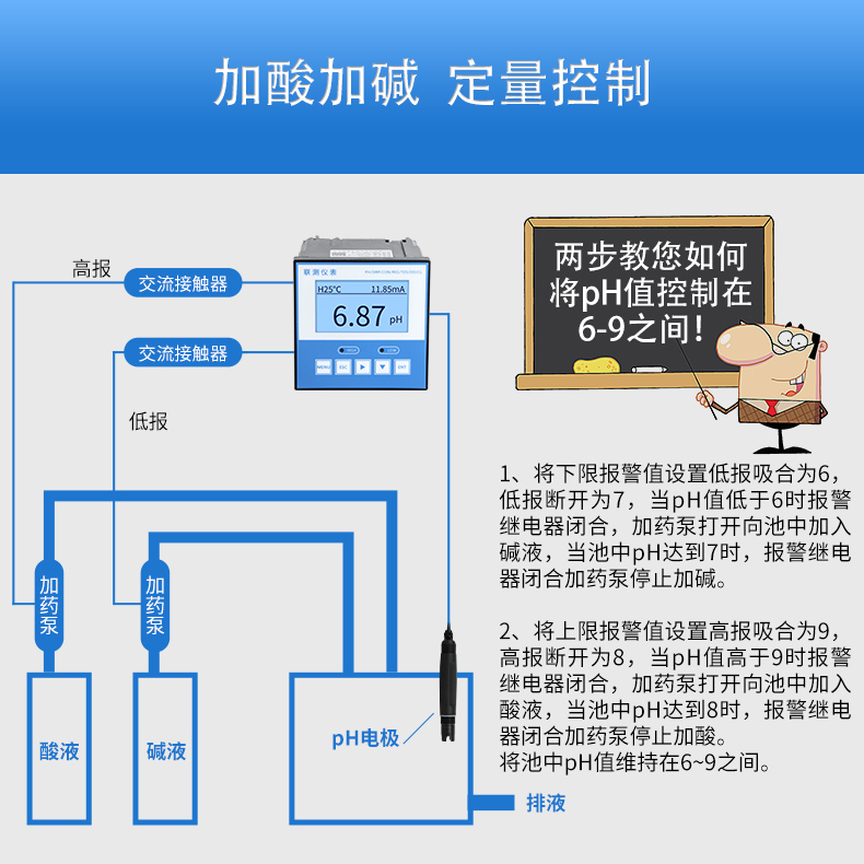 pH/ORP 控制器廣泛應用于火電、化工化肥、冶金、環保、制藥、生化、食品和自來水等行業,對溶液中pH 值或ORP值和溫度連續監測。連續監測數據通過變送輸出連接記錄儀實現遠傳監控與記錄。