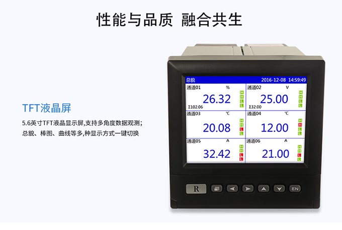 SIN-R4000D系列溫度無紙記錄儀可自由組態輸入標準電流、標準電壓、熱電偶、熱電阻、頻率等信號,可實現為傳感器配電和繼電器報警輸出,并且可通過U盤或通訊方式與上位機進行數據交換。無紙記錄儀本身具有實時數據顯示畫面、曲線顯示畫面以及棒圖數據顯示畫面,同時,可以與微型打印機相連接,實現現場打印功能,與聲光報警器連接,實現現場聲光報警功能。